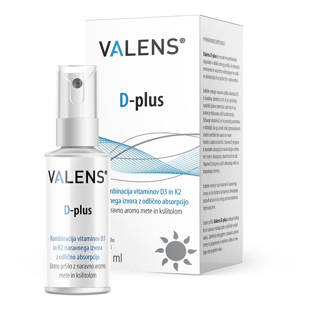 Uživanje vitamina D3 je še posebej pomembno v obdobjih, ko ga zaradi nizke izpostavljenosti sončni svetlobi telo samo ne more tvoriti v zadostni količini. Pri tem je pomembno vedeti, da niso vse oblike vitamina D3 enake. Valens vitamin D3 pršilo vsebuje naravno obliko vitamina D3, identično tisti, ki jo s pomočjo sončnih žarkov poleti sintetizira naše telo in za katero je dokazana odlična absorpcija. Izdelek vsebuje tudi vitamin K2 naravnega izvora, ki še dodatno prispeva k ohranjanju zdravih kosti.